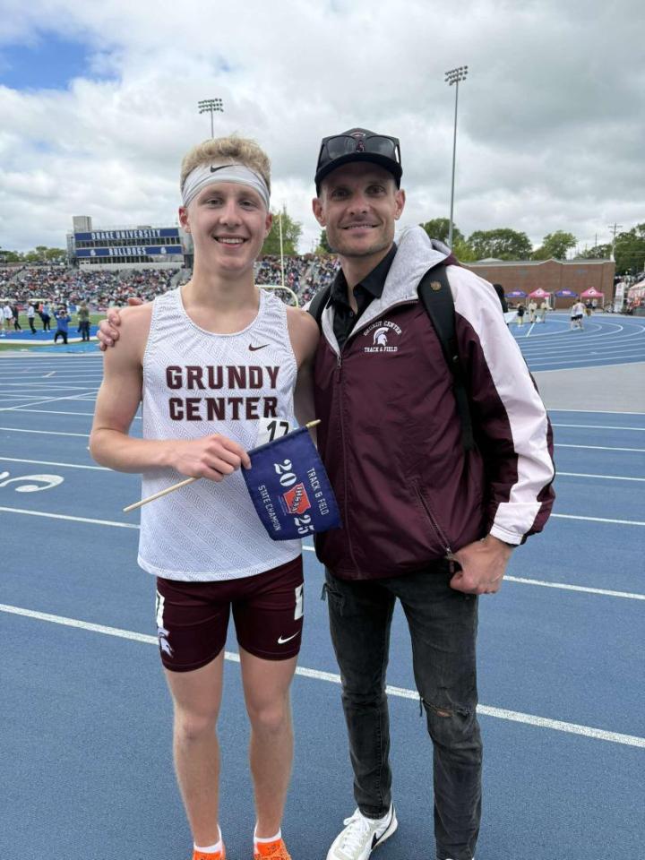 Nathan Schmadeke was the last Grundy Center athlete to win a state track title in 110 high hurdles in 2012. Vokes also shares a special bond with Dana Schmidt, a three-time state track champion including the school’s last win in the 3,200 meter run when he ran 9:36.44 for the 2007 title in 2A.