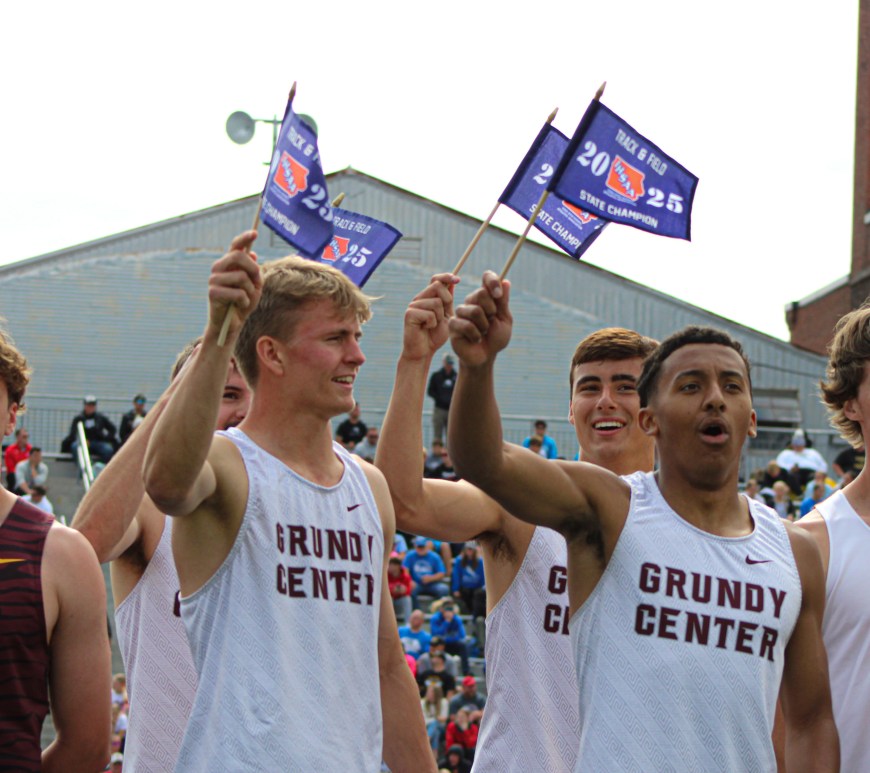 The Grundy Center boys sprint medley relay woke up on the winning side of the bed on Saturday morning. “We got here around 8:30 this morning, and we were ready to dominate,” Brody Zinkula said. The Spartans feasted on the 2A field at the state track and field meet in Des Moines, running 1:31.84 for the state championship. Grant Newton, Zinkula, Judd Jirovsky and Brayden … Continue reading Saturday state track and field: Spartan boys win sprint medley title